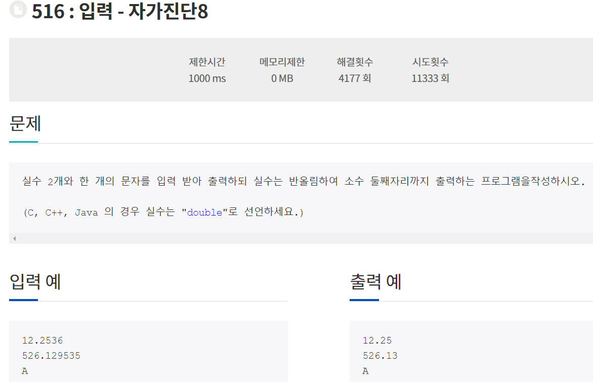 | 정올 Language_Coder 522 : 연산자 - 자가진단5 (0) | 2021.11.16 |