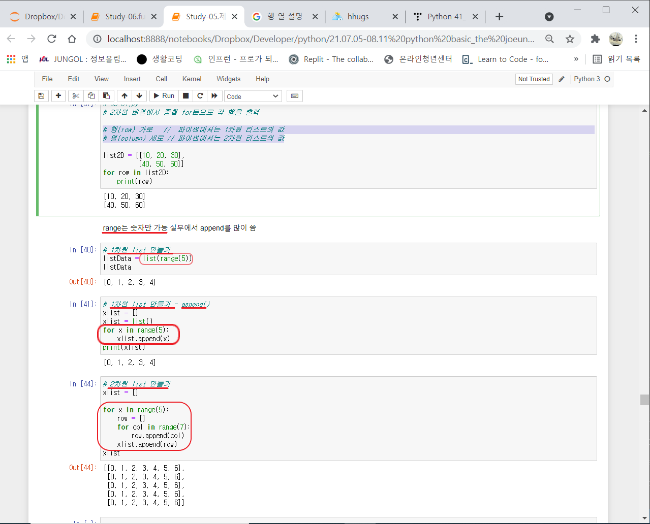 | [Python] 012. for문 - 행열이해 및 1,2차원 list생성법 (0) | 2021.08.25 |