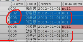-- EMPLOYEE테이블에서 김씨 성이 아닌 직원의 사번, 이름, 고용일 조회