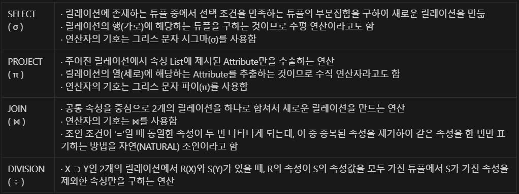관계형 데이터베이스에 적용할 수 있도록 개발한 관계 연산자
