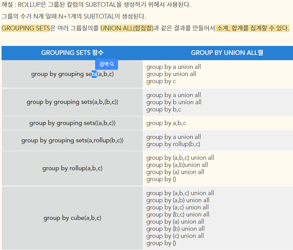 누적, 순위, 퍼센트, 평균, 총합 등 데이터를통계 or 집계 를 만들어주는 절