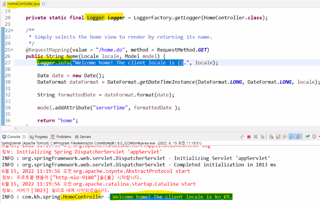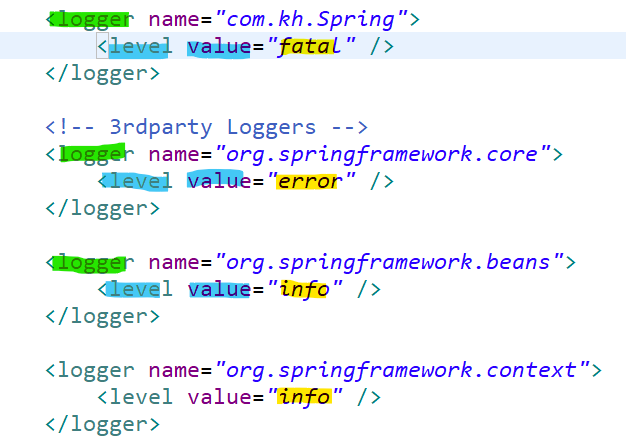 <logger name="**com.kh.Spring**">
