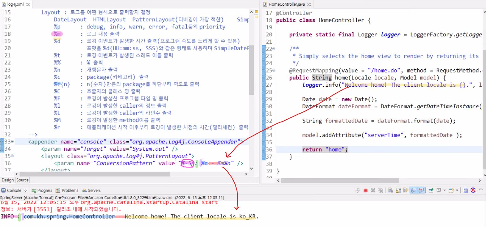 - %l : 로깅이 발생한 caller의 정보 출력