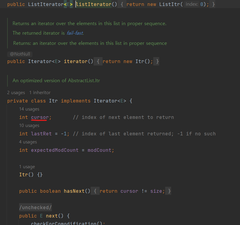 여튼 아래는 인텔리제이에서 파보다보니까 cursor가 나오게 됐고 "기준점"정도로 이해하면 될 것 같다