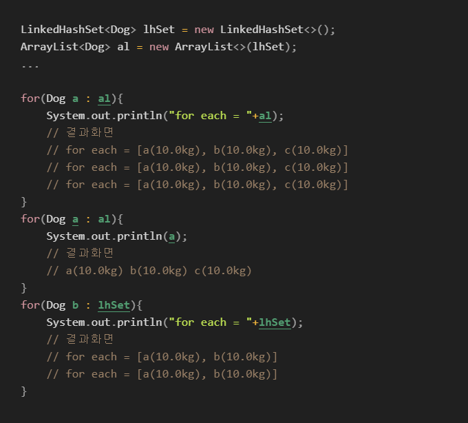 System.out.print(li.next()+" "); // a(0점) a(1점) a(2점) a(3점) a(4점)