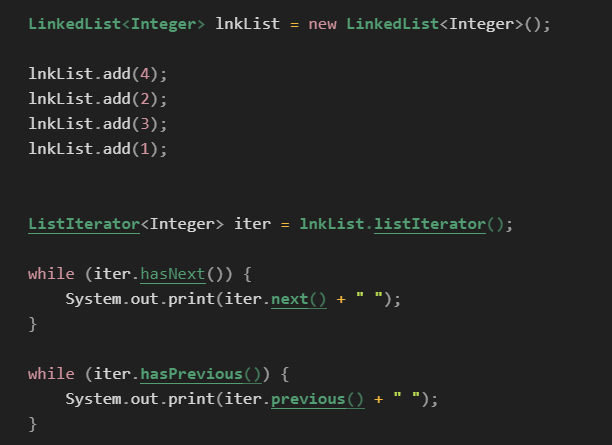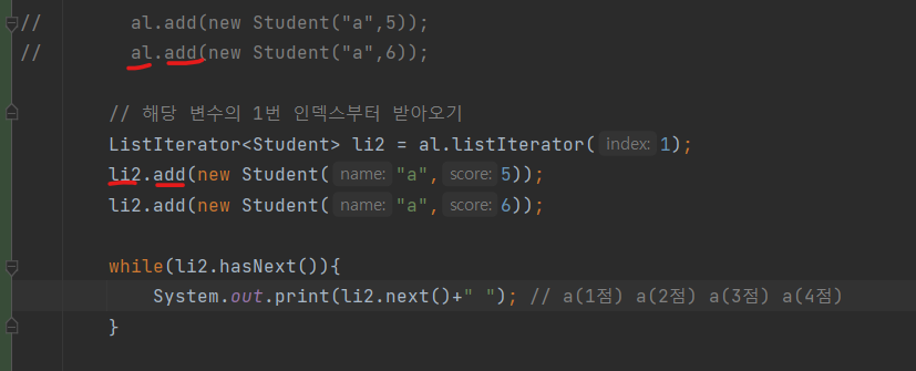 System.out.print(li.previous()+" "); // a(4점) a(3점) a(2점) a(1점) a(0점)